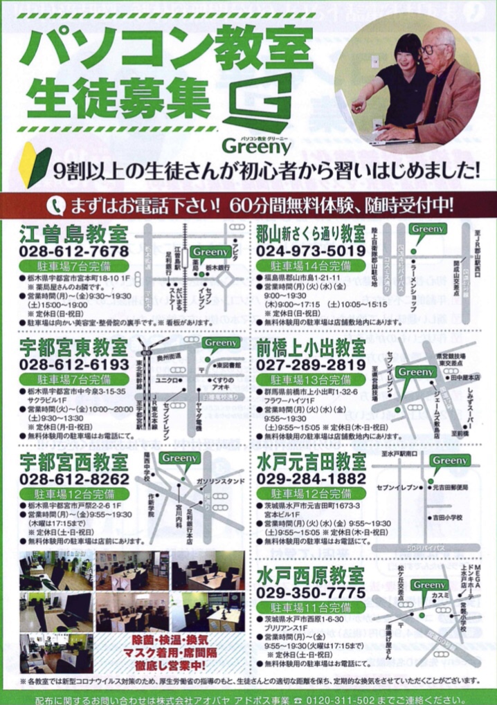 今回ご紹介するのは【パソコン教室 グリーニー】さまチラシです!
