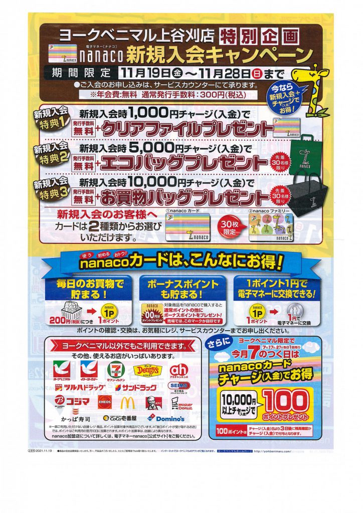 また、nanacoの新規入会キャンペーンもございます?