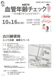 この度、カーブス 宮城古川さまが主催となり、女性の皆さまを対象とした「血管年齢チェック」イベントを無料で実施されます。