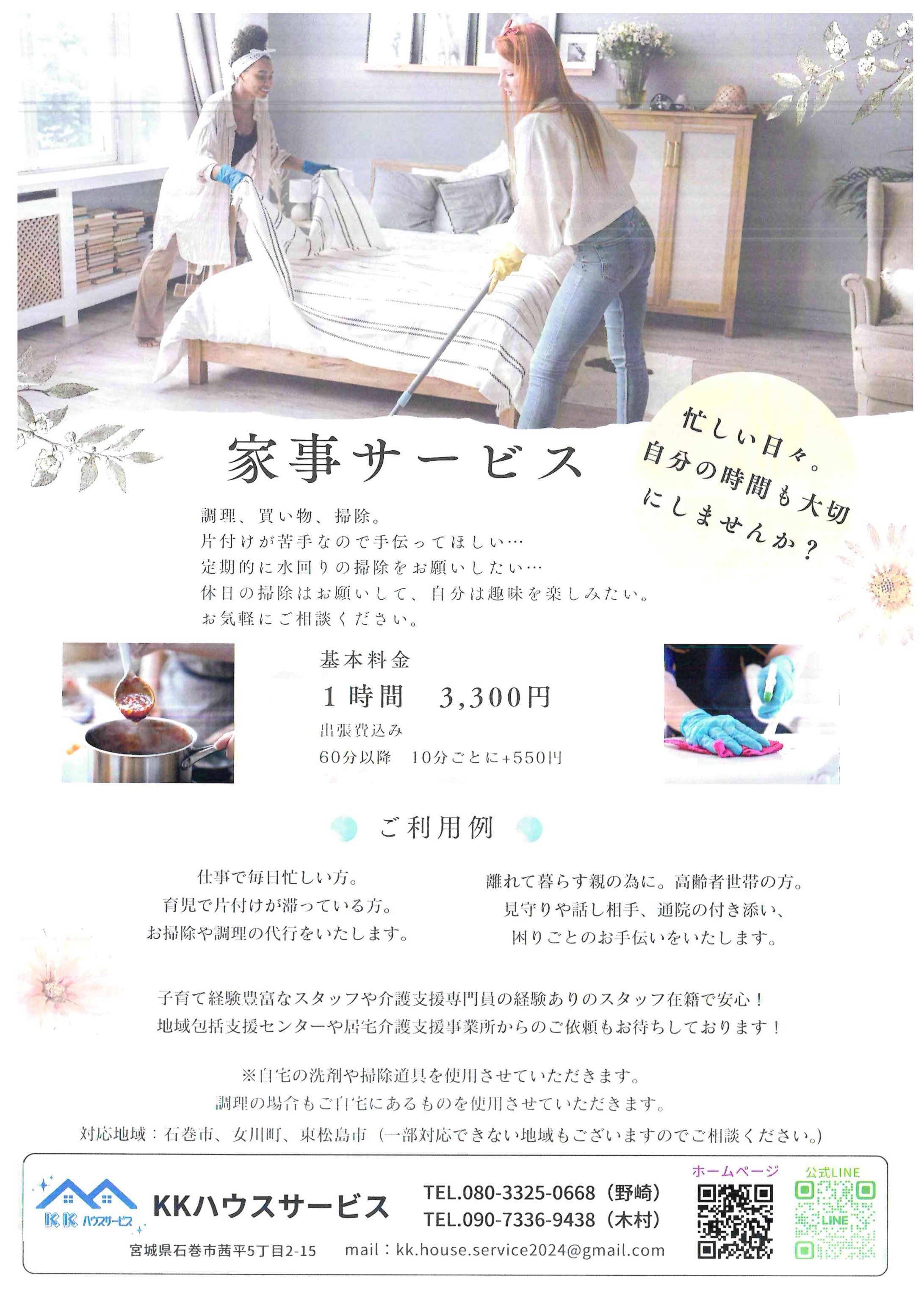 今回は、宮城県石巻市、女川町、東松島市エリアで活躍されているKKハウスサービスさまをご紹介しました。プロの技術による徹底的な「おうちクリーニング」から、日々の暮らしにゆとりをもたらす「家事サービス」まで、幅広いニーズに応えてくださいます。年末の大掃除や日常の家事でお困りの方は、ぜひ一度KKハウスサービスさまに相談してみてはいかがでしょうか。