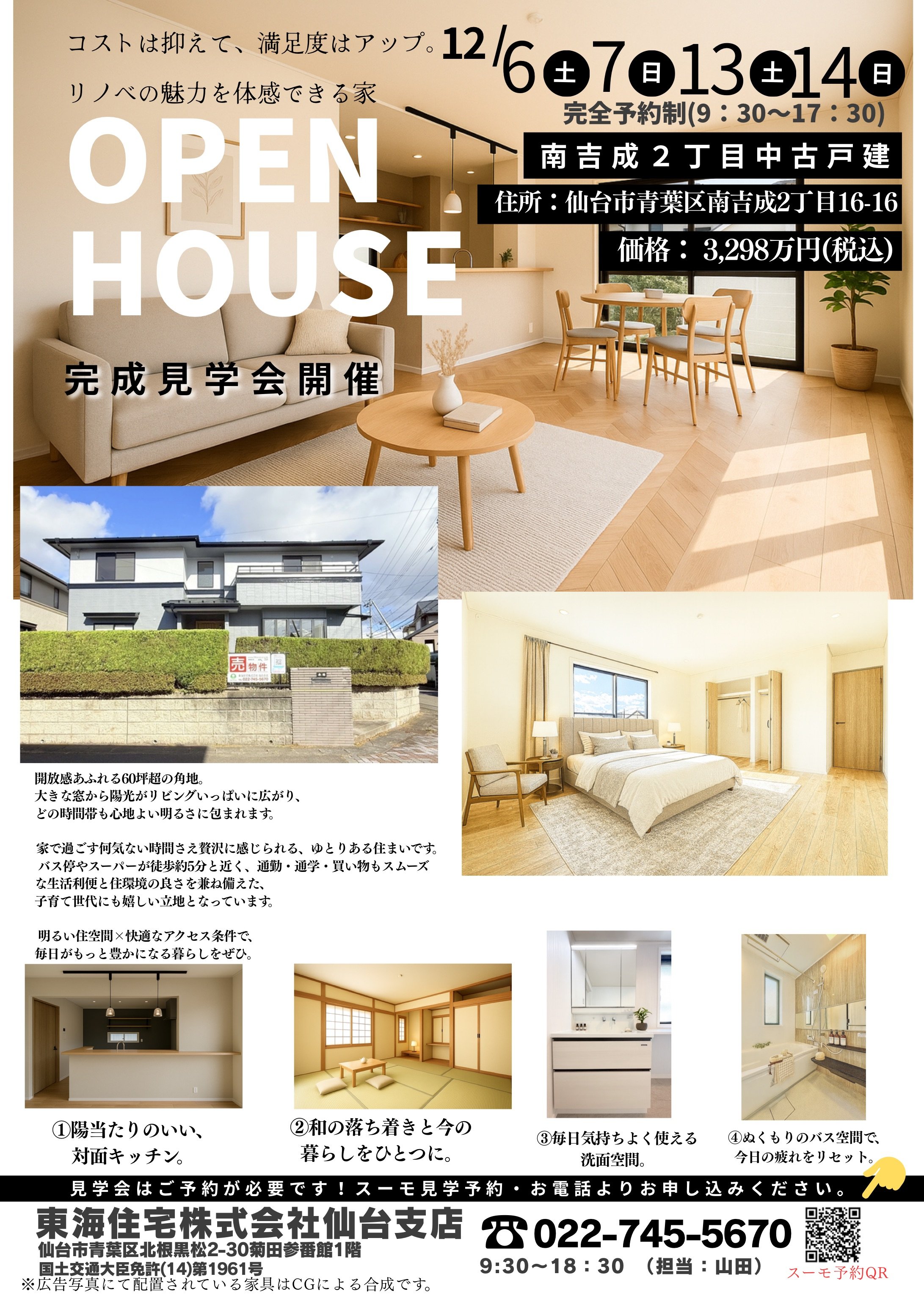 【12/6,7,13,14開催】東海住宅株式会社仙台支店さま|リノベーション完成見学会のご案内