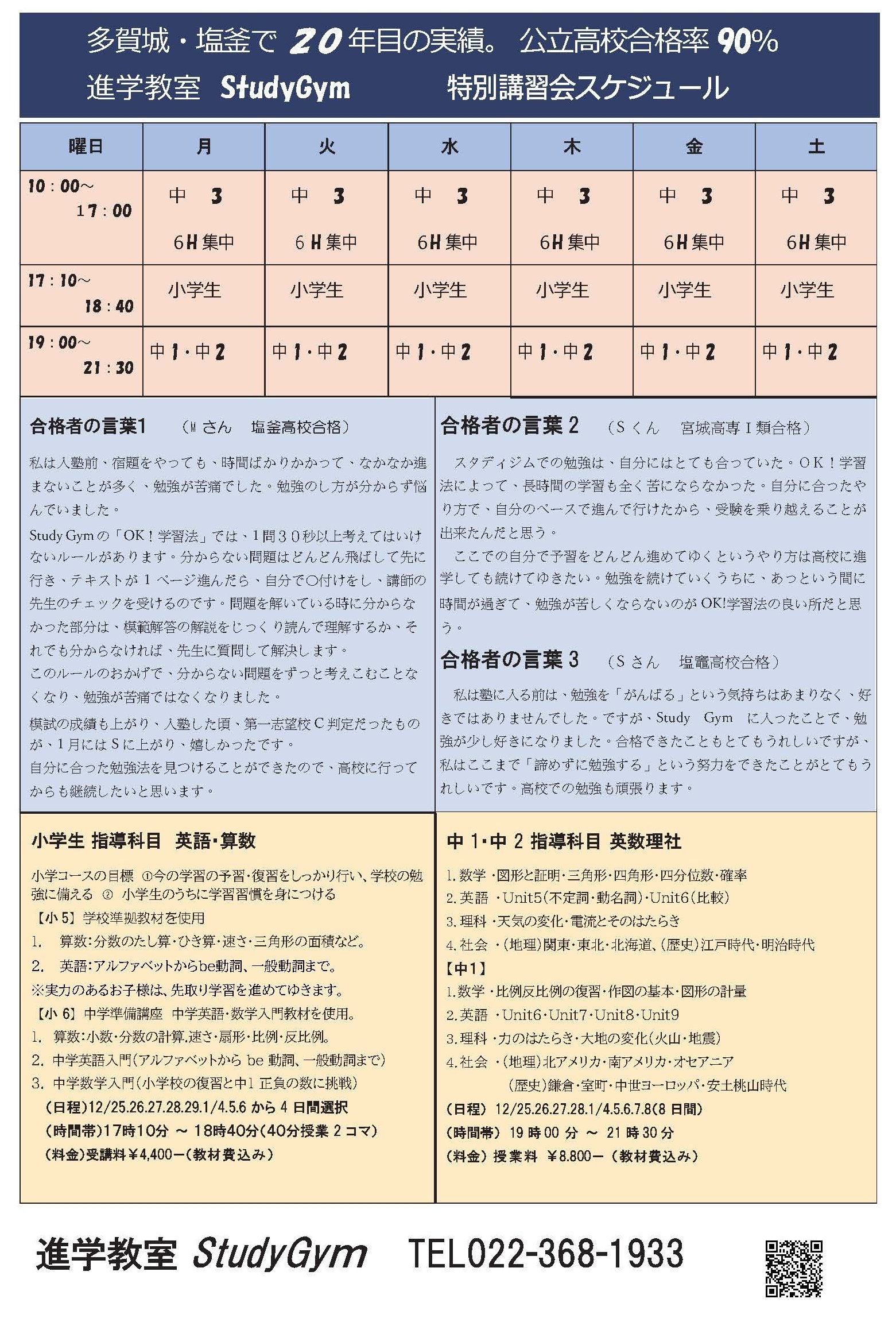 - 対象: 小学生・中学1年生・中学2年生