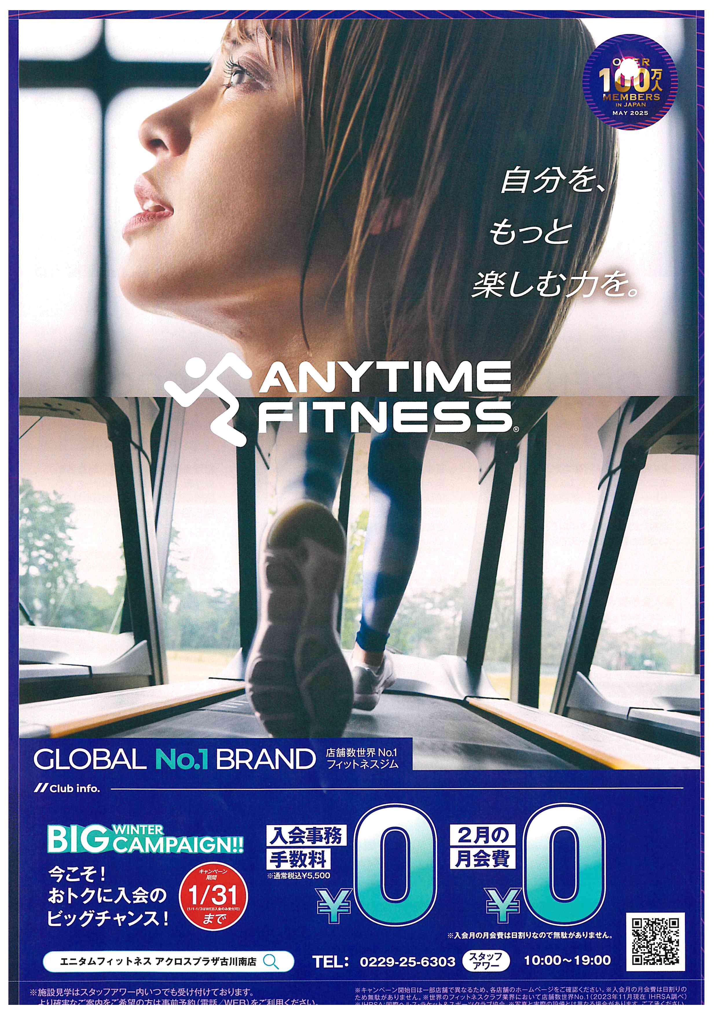 なんと現在、エニタイムフィットネス アクロスプラザ古川南店さまでは、超お得な「WINTER BIG CAMPAIGN」を実施中です!🎉 1月31日(水)までに入会すると、通常5,500円(税込)の入会事務手数料と、なんと2月の月会費が**【0円】**になるんです!🙌 初期費用をグッと抑えてスタートできる、まさにビッグチャンス!入会月の月会費は日割り計算なので、月の途中から始めても無駄がないのも嬉しいポイントですね。✅