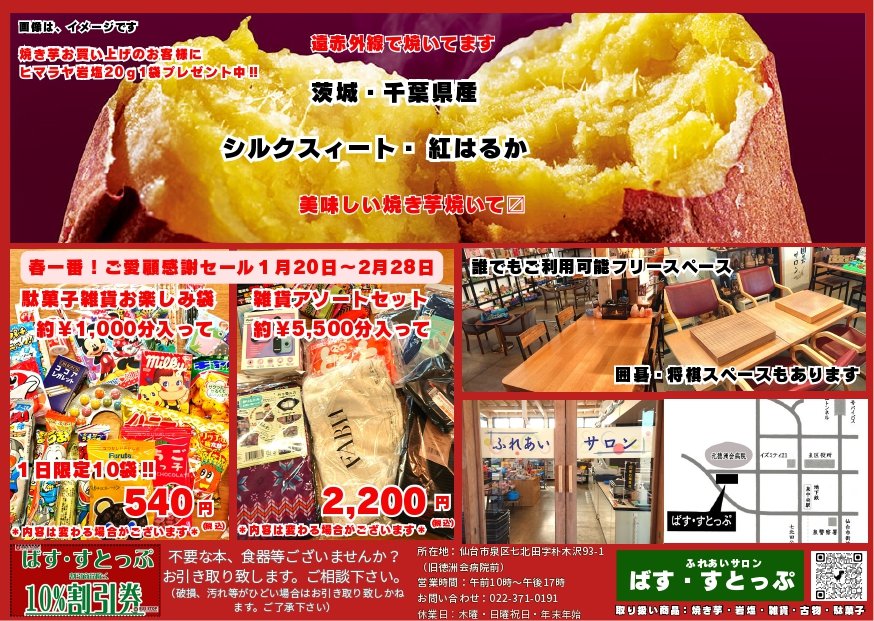 【仙台市泉区】ふれあいサロン ばす・すとっぷさまで絶品焼き芋&感謝セール開催中!🍠✨