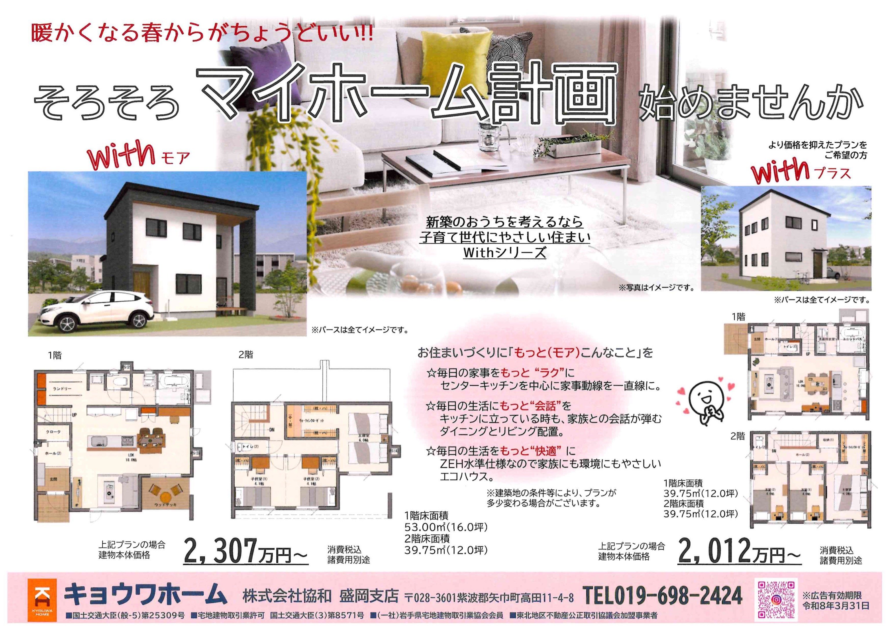 より価格を抑えたプランをご希望の方には「Withプラス」も用意されており、ご予算に合わせて理想のマイホームを計画できますよ!
