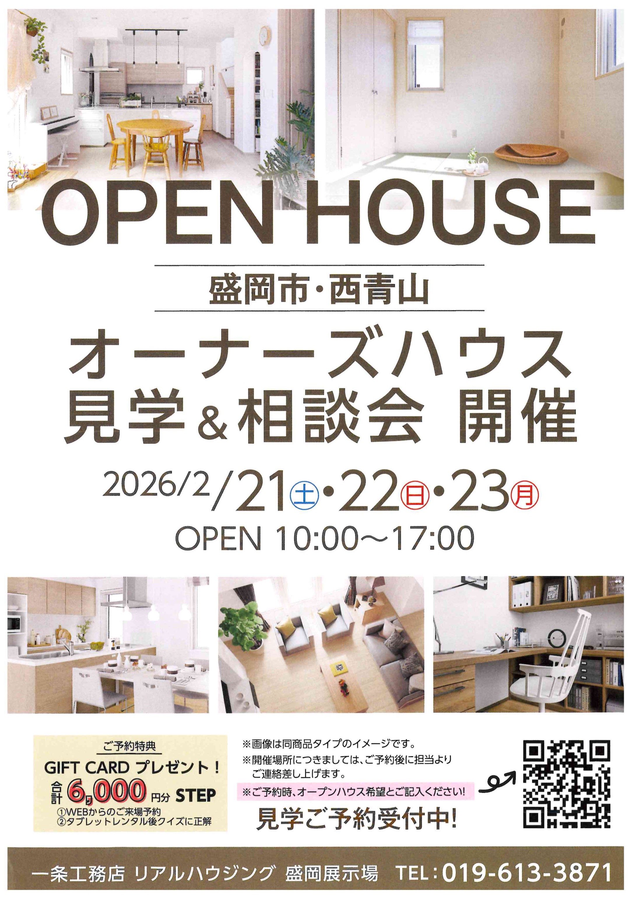 🏠【盛岡市・西青山】一条工務店 リアルハウジングさまのオーナーズハウス見学会開催!✨ 2/21(土)~23(月)