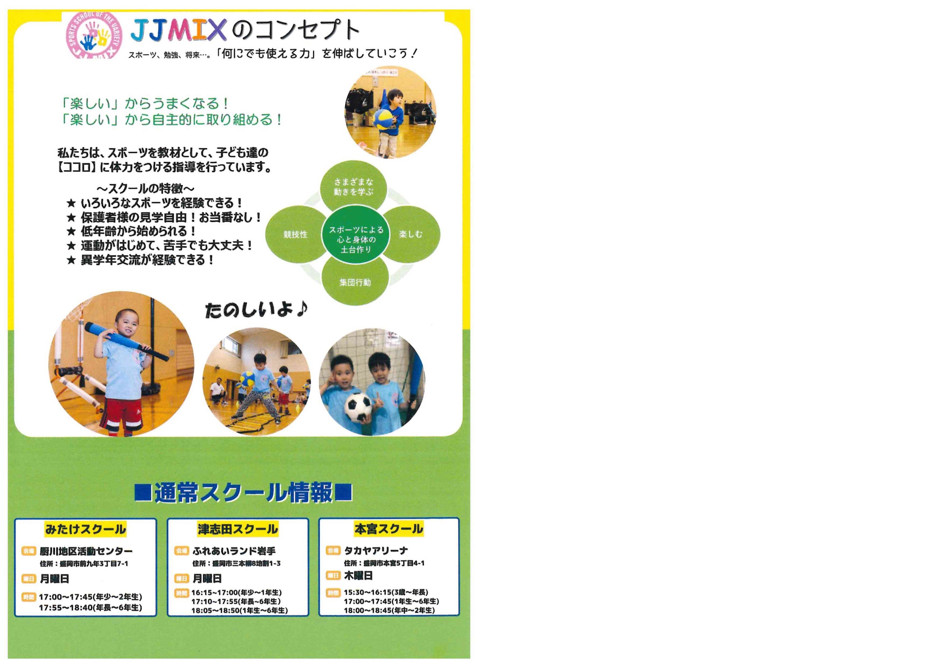 ※各クラスの詳しい時間と対象年齢は、JJMIXスポーツスクールさま公式サイトでご確認ください。
