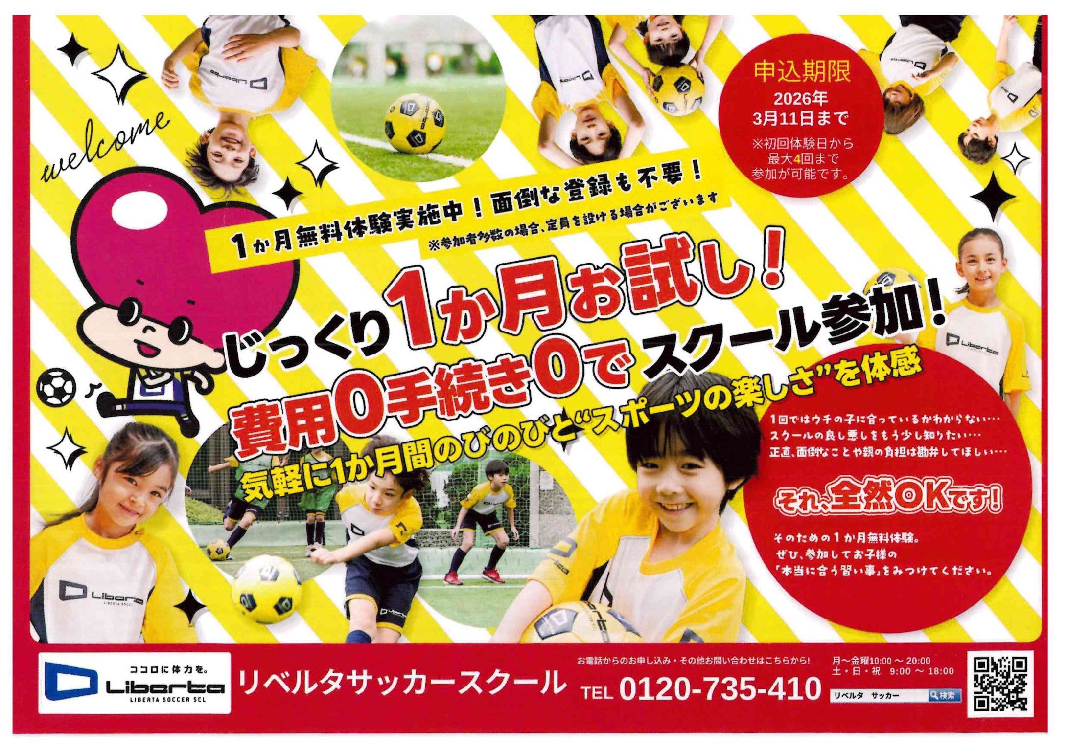 この度、全国でサッカースクールを展開されているリベルタサッカースクールさまが、なんと**「費用・手続き0円」で参加できる「じっくり1ヶ月お試しキャンペーン」**を実施されています!🙌