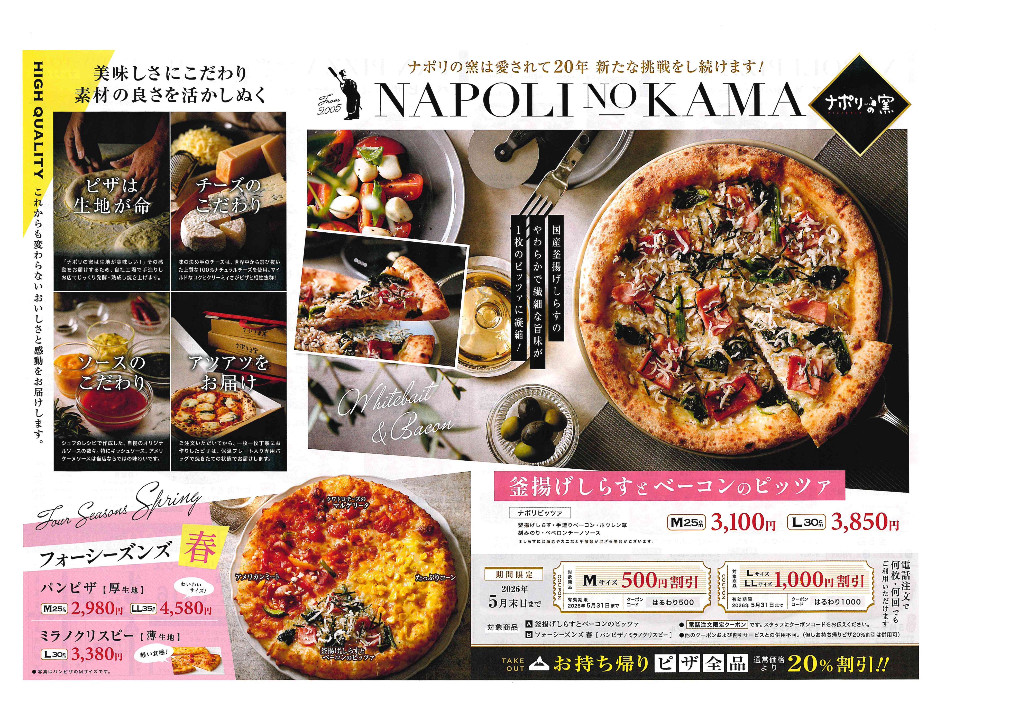創業から20年、変わらない美味しさと感動を届け続けるナポリの窯さま。そのこだわりが詰まったピザは、一度食べたら忘れられない美味しさです。今回は、注目の春限定メニューと、見逃せないお得なキャンペーン情報をお届けします!🙌