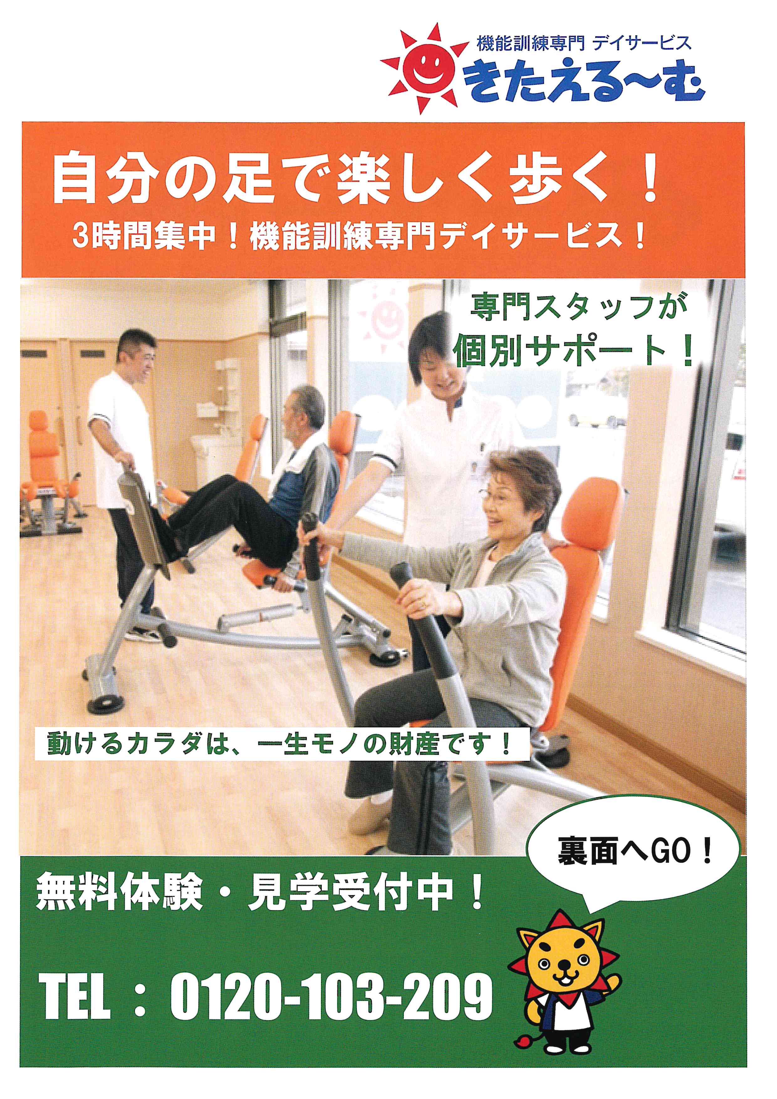 「最近、歩くのが少し大変…」「これからも元気に自分の足で出かけたい!」そんな風に感じていませんか?😥 今回は、そんな想いに応えてくれる機能訓練専門デイサービス**「きたえる〜む」さま**をご紹介します!✨「動けるカラダは、一生モノの財産です!」を合言葉に、いきいきとした毎日をサポートしてくれる、心強い味方ですよ。