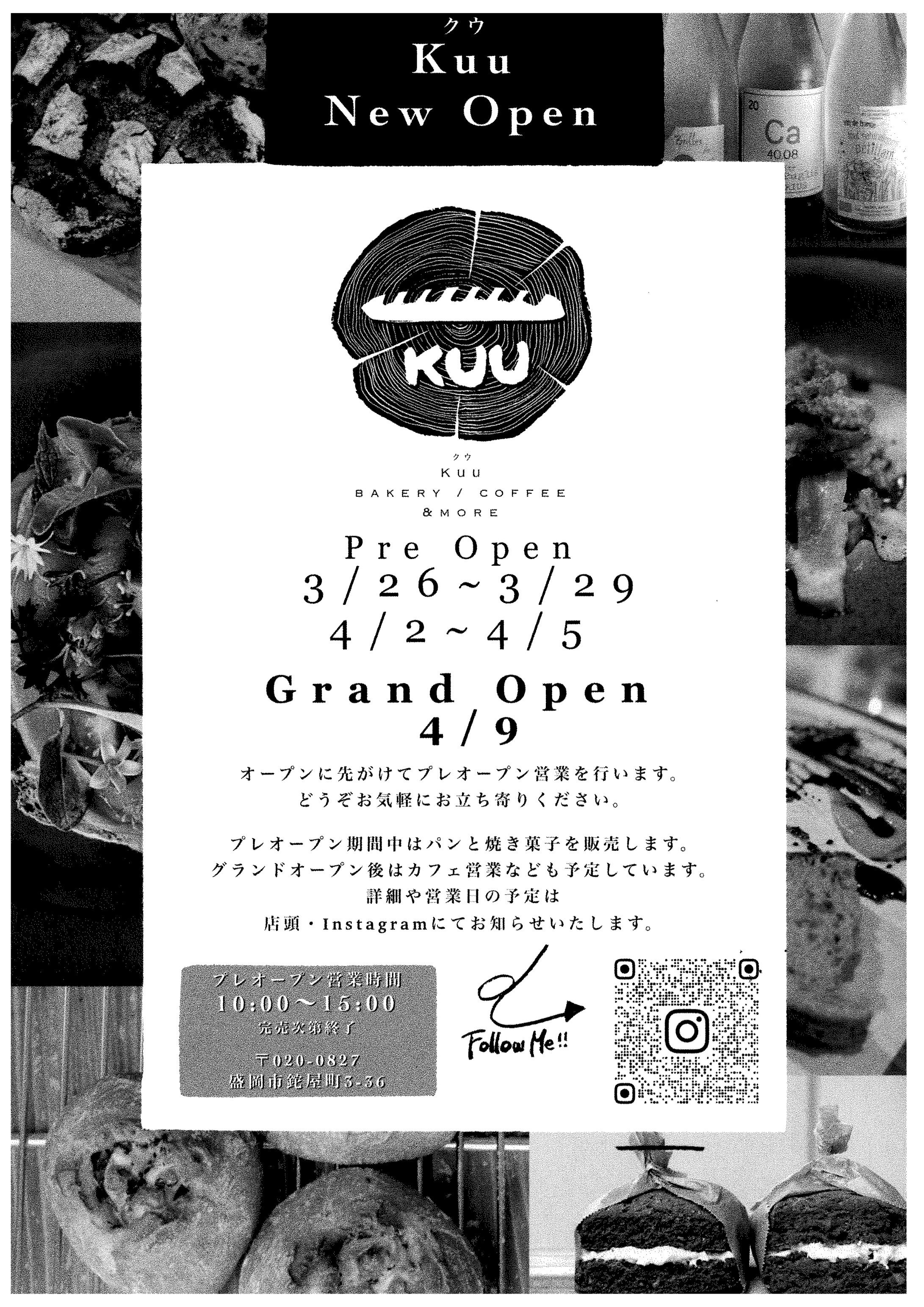 皆さん、こんにちは!🙌 今回は、心躍る素敵なお知らせです!✨ なんと、風情ある街並みが魅力の盛岡市鉈屋町に、新しいベーカリーカフェ「Kuuさま」がオープンします!🎉 ロゴの年輪のデザインからも、地域に根差し、長く愛されるお店にしたいという想いが伝わってきますね。グランドオープンは4月9日ですが、それに先駆けてプレオープン営業も行われるとのこと。一足先に、美味しいパンと焼き菓子に出会えるチャンスです!これは見逃せませんね!💖 ぜひ、お散歩がてら立ち寄ってみてはいかがでしょうか?