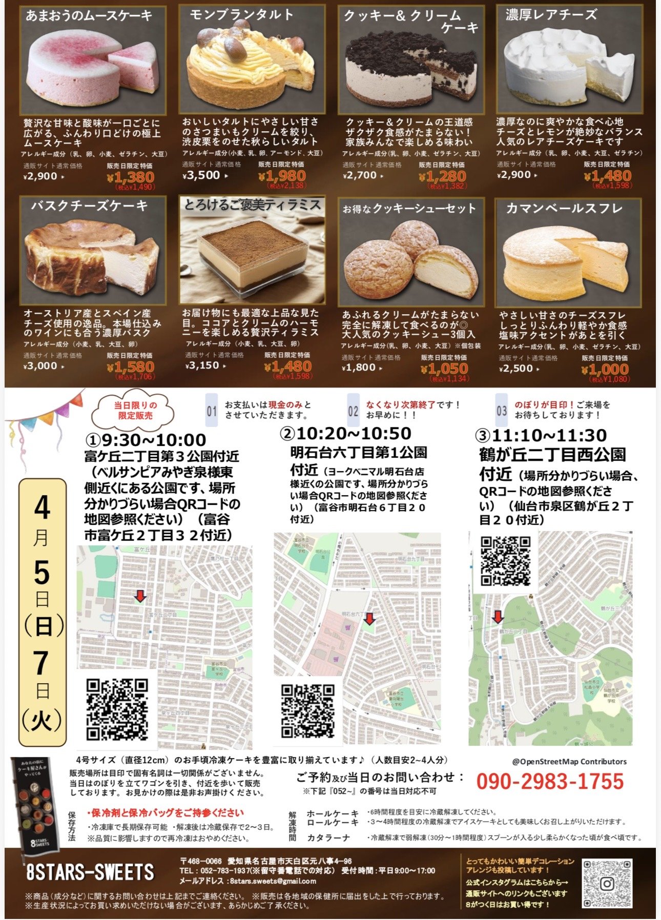 今回は、8STARS-SWEETSさまの移動販売会についてご紹介しました。✅ 絶品の「究極のカタラーナ」をはじめ、たくさんの美味しいスイーツが限定特価で手に入る、またとないチャンスです!冷凍で長期保存も可能なので、お得なまとめ買いが賢い選択。4月5日(日)と7日(火)は、ぜひお近くの会場へ足を運んでみてくださいね!🚚💨