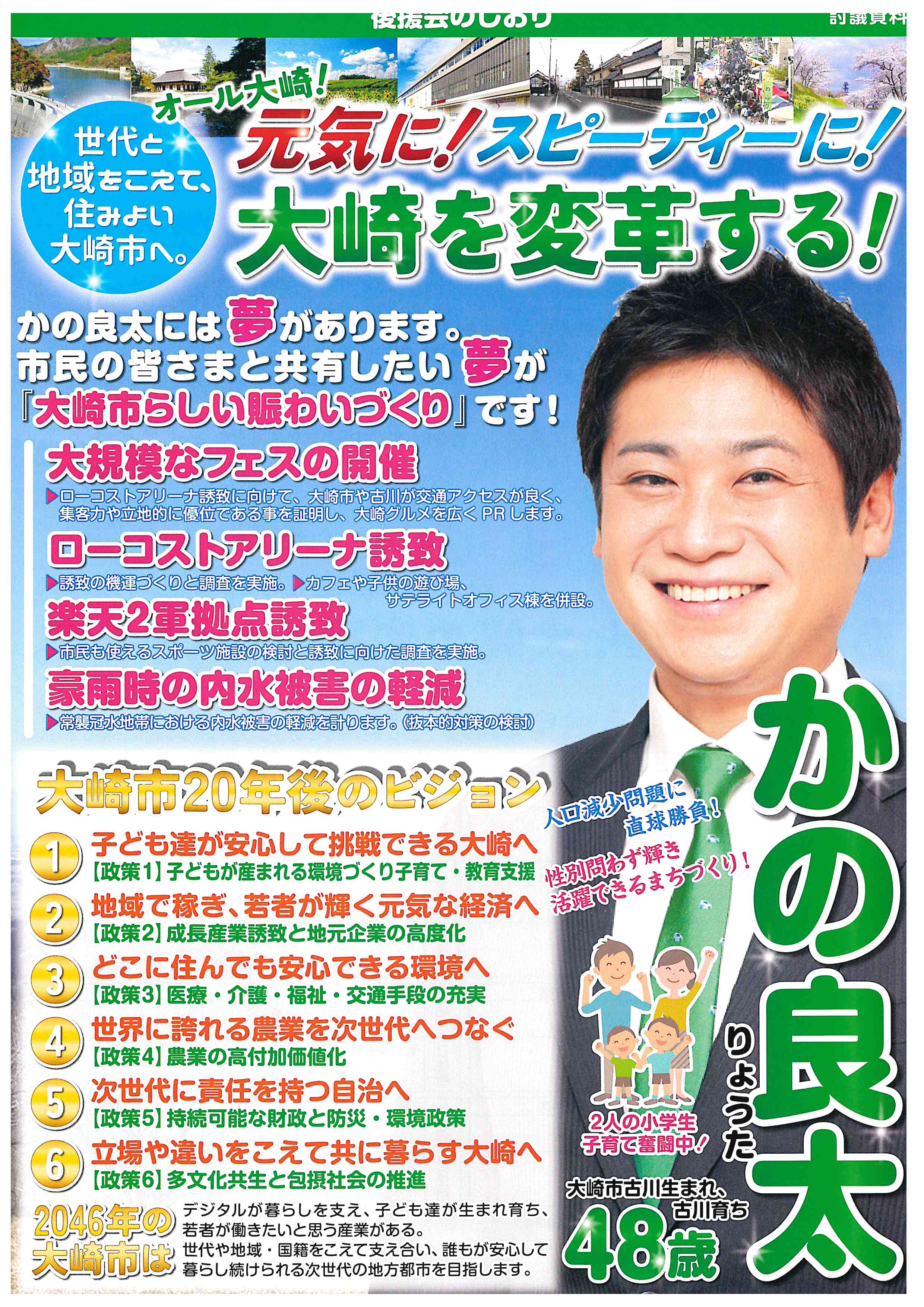 2人のお子さまを育てる父親でもある、かの良太さまが描く、大崎市変革のための具体的なプランを見ていきましょう。