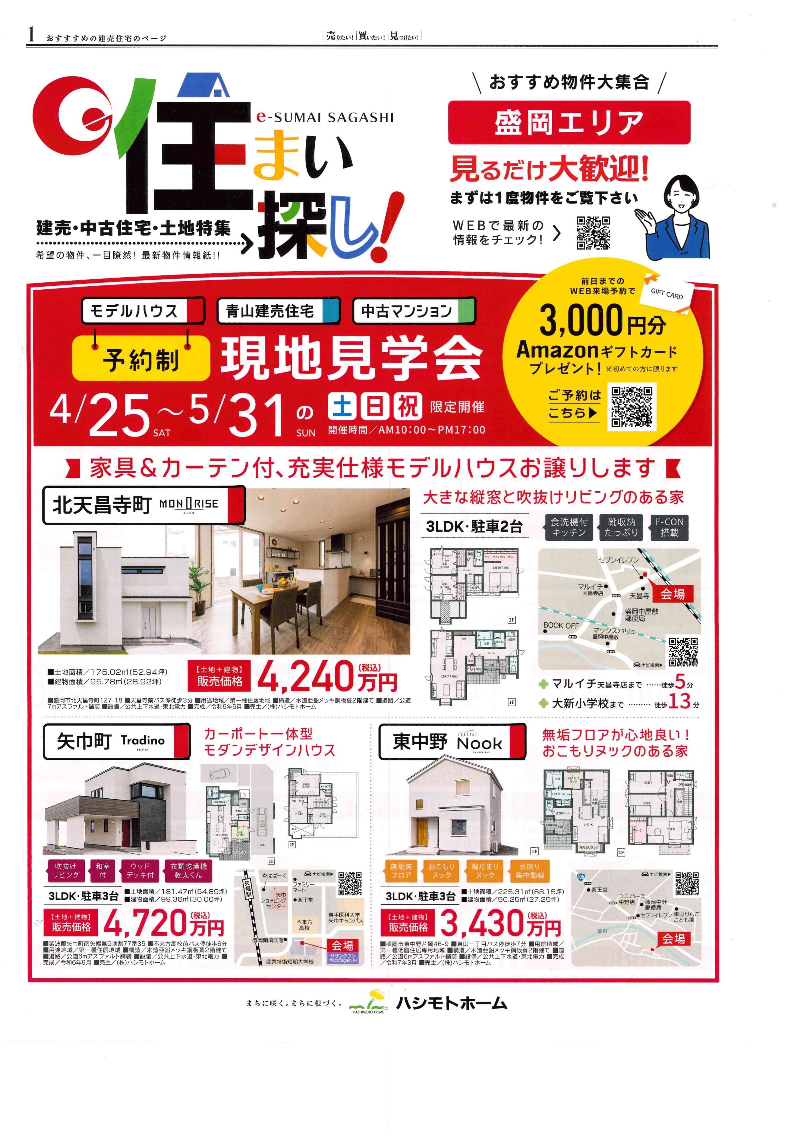 今回は、ハシモトホームさまがお届けする、盛岡エリアの「住まい探し」イベントをご紹介しました🙌✨ デザイン性の高い新築建売住宅から、利便性の良い中古マンションまで、たくさんの選択肢の中から、きっとあなたの心に響く住まいが見つかるはずです。お得な来場特典もあるこの機会に、ぜひ現地で物件の魅力を直接体感してみてくださいね!