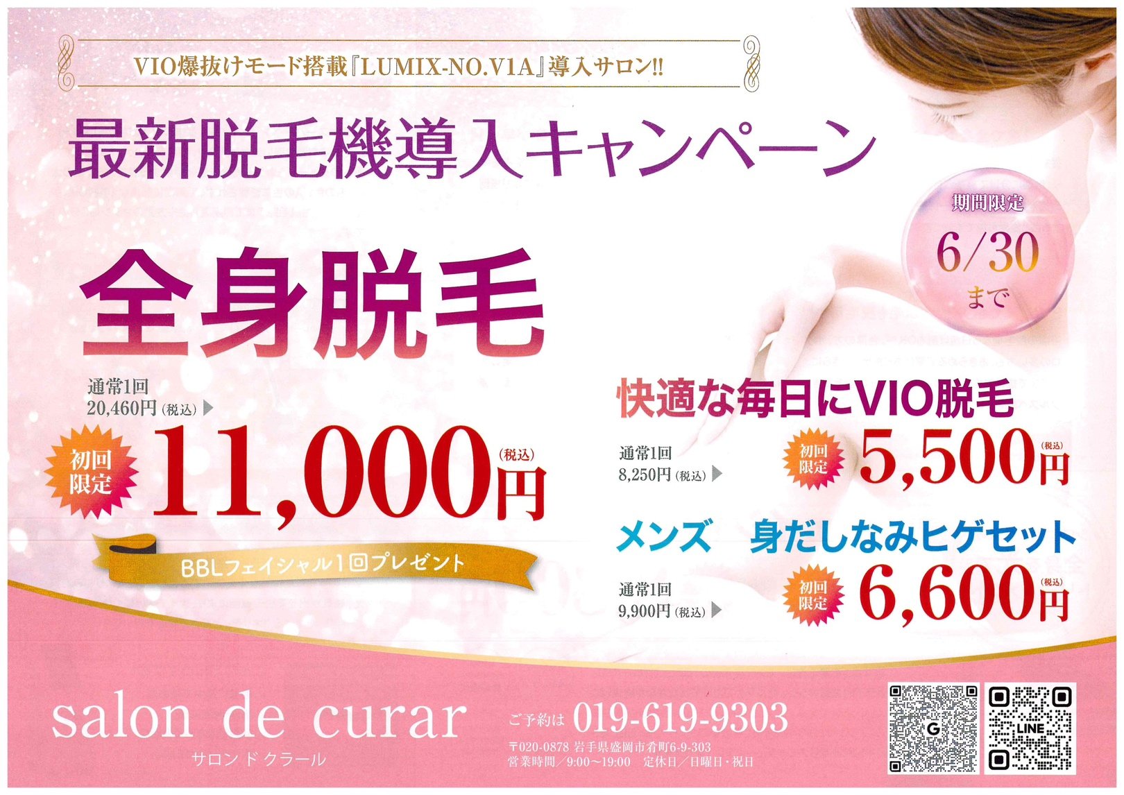 今回は、盛岡市の「salon de curarさま」が導入された最新脱毛機と、お得なキャンペーンについてご紹介しました。😊