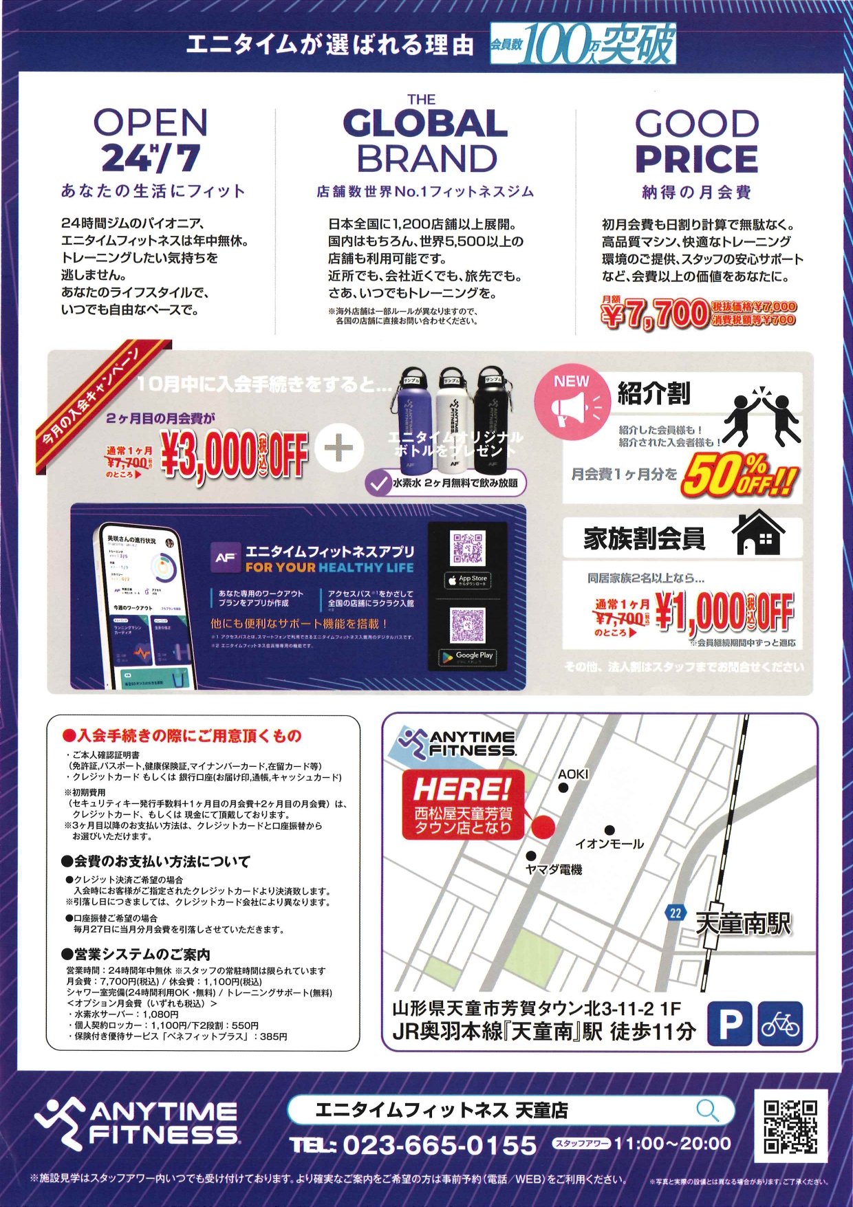 ※キャンペーンの詳細や諸条件については、エニタイムフィットネス天童店さまへ直接ご確認ください📩