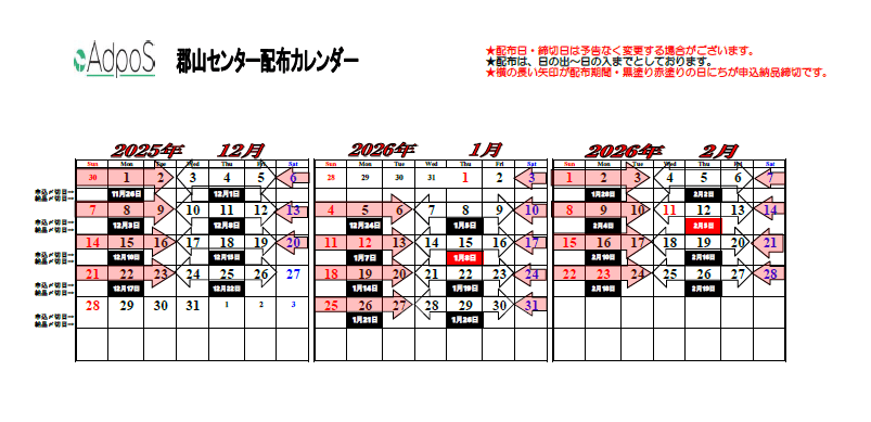 🌟アドポス郡山センター 配布カレンダーのご案内🌟