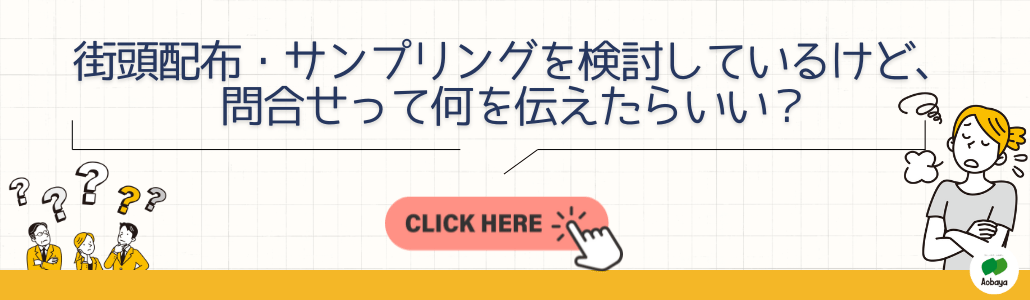 街頭サンプリングをご検討の方は、お電話・メール、又はお問い合わせフォームよりお気兼ね無くご連絡下さい。実施に向けてのご相談、街頭サンプリングについてのご質問、ご予算に合わせた配布計画のご提案をさせて頂きます。