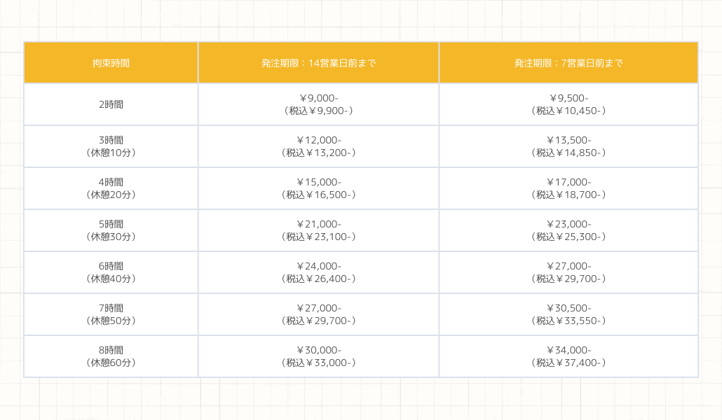-お貸出しの衣装が無い場合、弊社規定の服装で勤務させて頂きます。